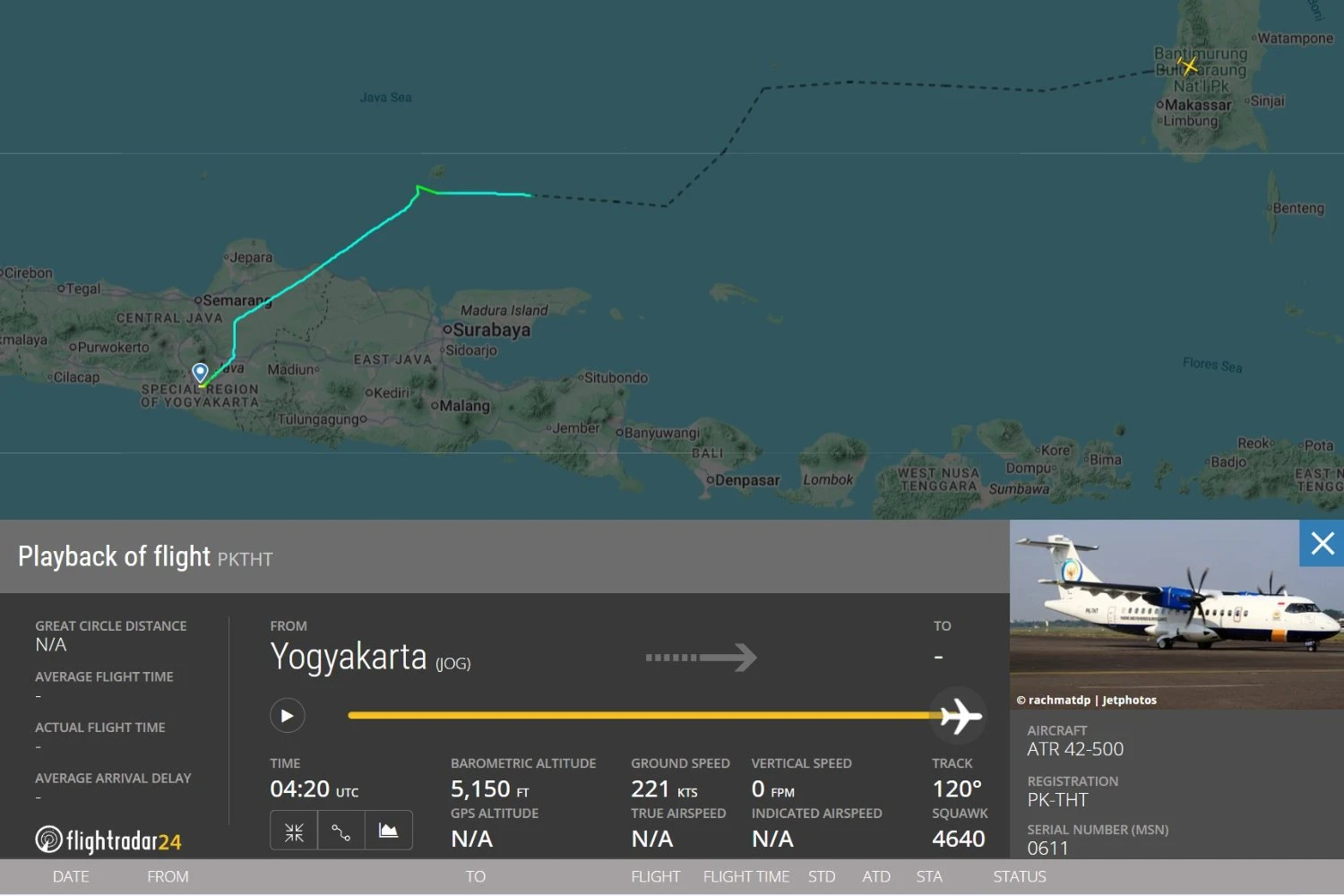 The aircraft, registered PK-THT, was operated by Indonesia Air Transport on behalf of the Marine and Fisheries Resources Surveillance agency (PSDKP). It departed Yogyakarta-Adisutjipto Airport on the morning of January 17 and lost contact with air traffic control while approaching Makassar-Sultan Hasanuddin International Airport.