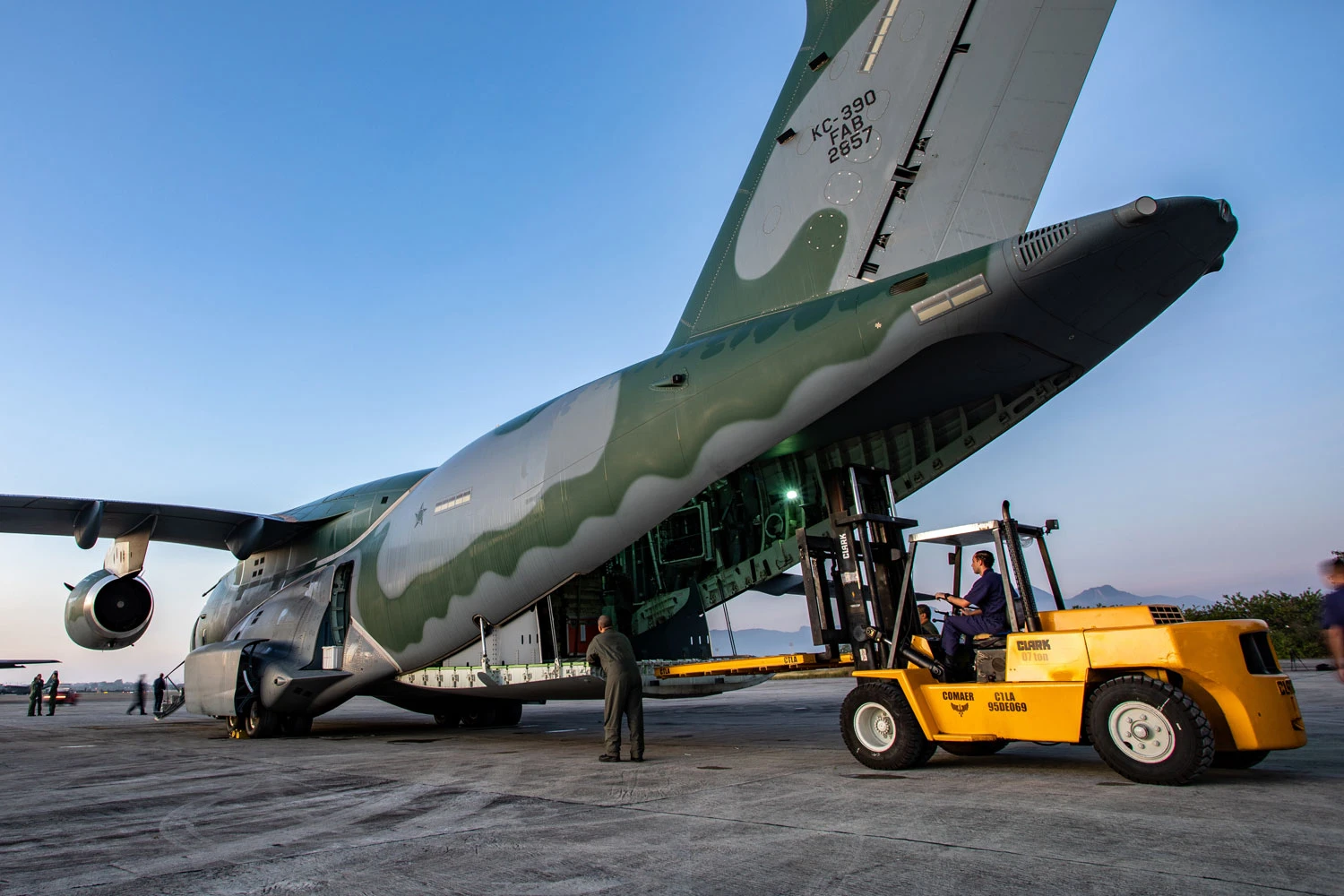The KC-390 can carry up to 26 metric tons of cargo and can also perform aerial refueling, medical evacuation, firefighting and troop transport missions.