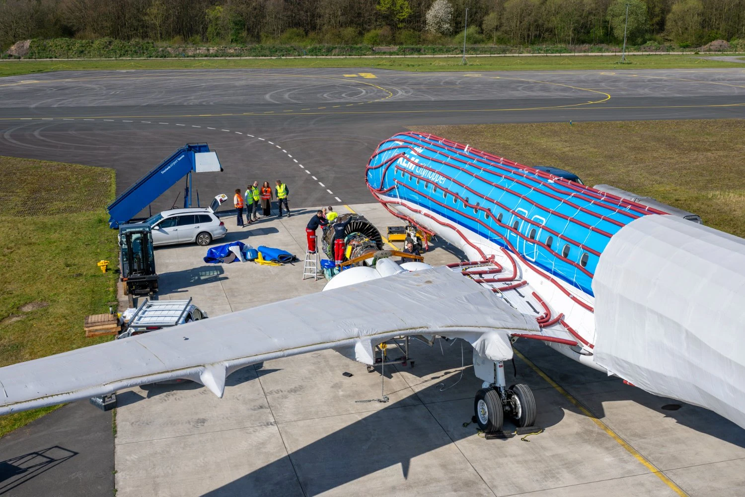 The aircraft had undergone a detailed preservation process before being parked. Engines, auxiliary power units and batteries were removed, and the airframe was fully wrapped in protective film to shield it from weather exposure during long-term storage. The wrapping process, described by KLM as a “cocoon,” took several weeks to complete.