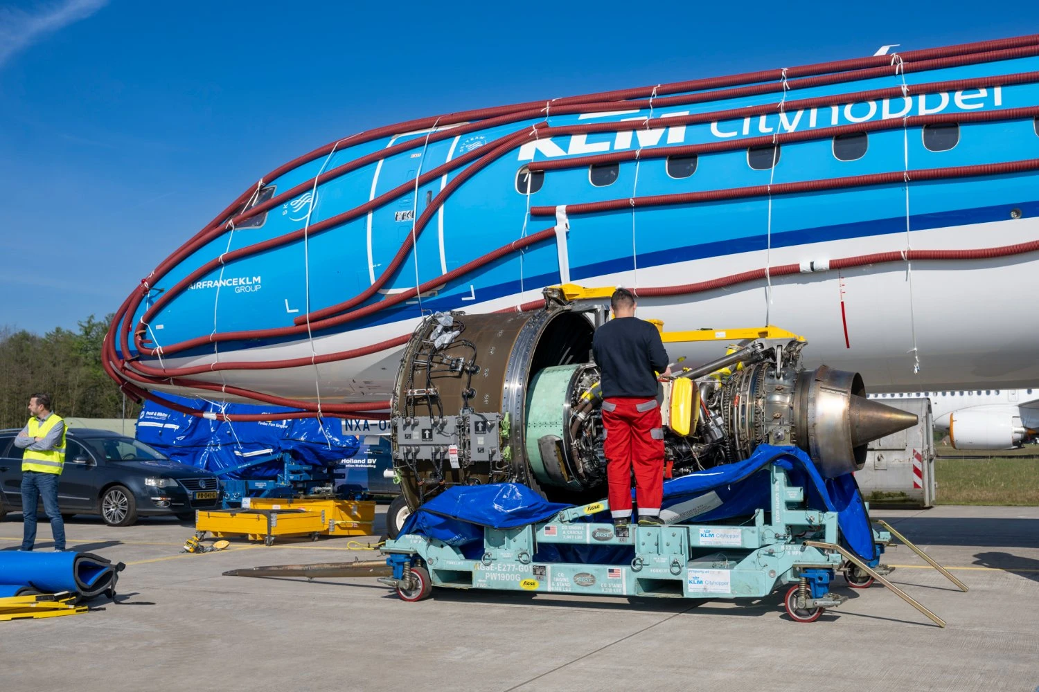 With engine availability improving, the airline has begun reactivating the aircraft. One of the jets, registered PH-NXA, is currently being prepared to re-enter service after being removed from storage.