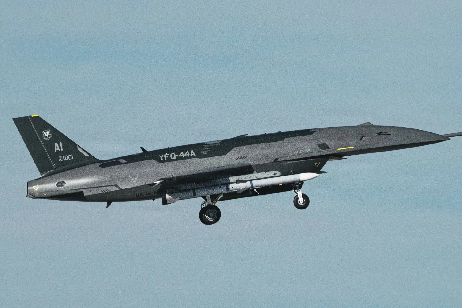 The U.S. Air Force (USAF) has released the first official image of Anduril’s YFQ-44A Fury collaborative combat aircraft carrying an AIM-120 Advanced Medium-Range Air-to-Air Missile (AMRAAM), a sign that the service is accelerating development to have a fleet of "combat drones" as soon as possible.